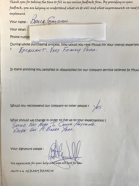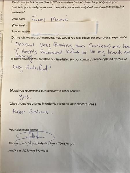 Excellent, Very friendly and courteous and honest i happily recommended Auto4U to all my friends and family.