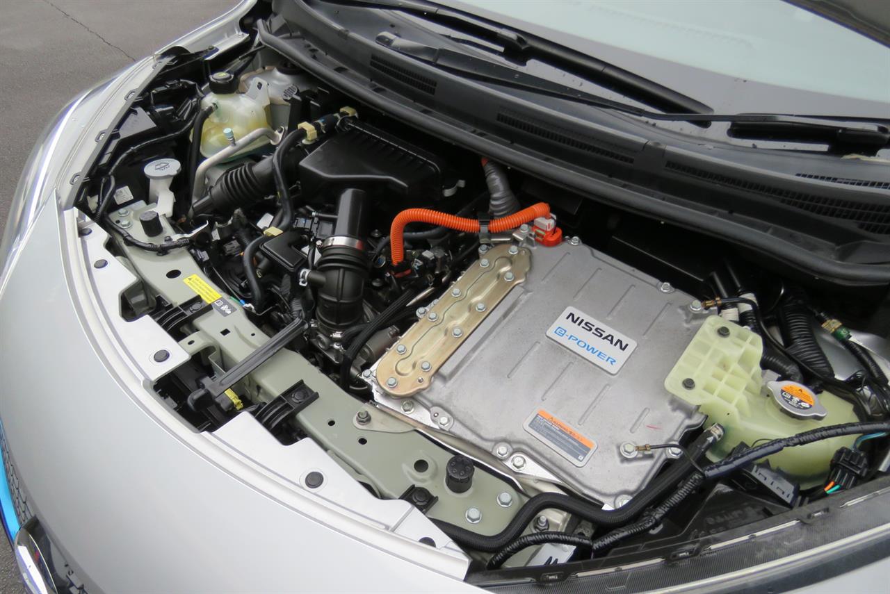 Powertrain: 1.2L 3-cylinder gasoline engine (HR12DE) that charges the battery, which powers the electric motor (EM57).