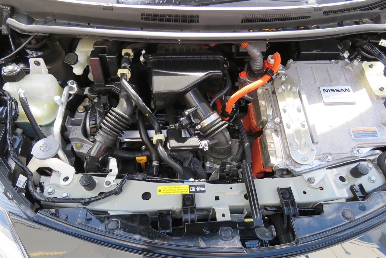 Powertrain: 1.2L 3-cylinder gasoline engine (HR12DE) that charges the battery, which powers the electric motor (EM57).